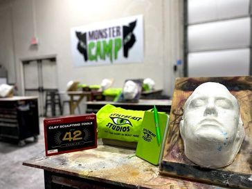 3 days of small classroom instruction and guidance, a Stiltbeast Studios apron, sculpting headform (so you can keep sculpting at home!), Stiltbeast journal, Stiltbeast Monster Camp patches, certificate of completion, work space, sculpting tools, all your materials needed: clay, plaster, latex, straps, paint, etc. Plus your meals and a complimentary shuttle to and from the host hotel.
